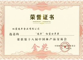 第十五屆中國(guó)綠色食品博覽會(huì)金獎(jiǎng)