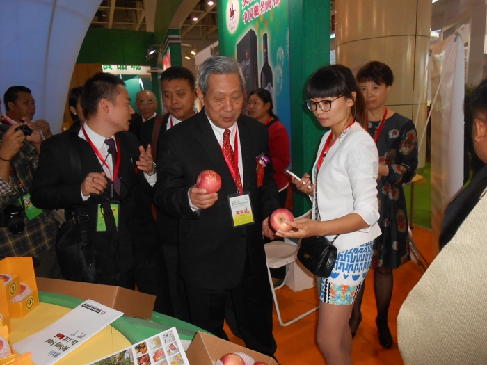 2014年9月26日,第十五屆果蔬會(huì),泰國(guó)前副總理、泰中文化促進(jìn)委員會(huì)主席披尼.扎祿頌巴先生來(lái)到棲霞德豐食品有限公司的展臺(tái)前,稱(chēng)贊我們德豐蘋(píng)果“好”!
