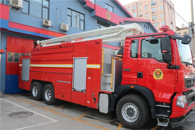 儀式結(jié)束后,大隊主官向出席儀式的領(lǐng)導(dǎo)介紹了新投入執(zhí)勤的高噴消防車。