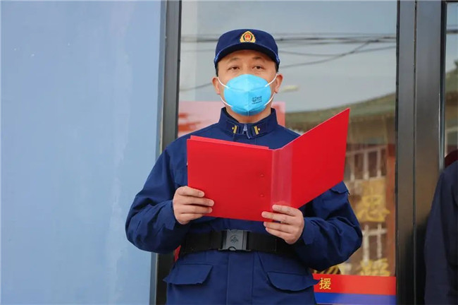 成金峰教導(dǎo)員代表全體消防指戰(zhàn)員對始終重視、關(guān)心支持消防救援隊伍建設(shè)的市委、市政府,以及以棲霞德豐食品有限公司等為代表的社會各界表示衷心的感謝。