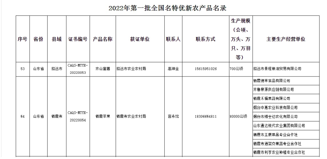 近日,農(nóng)業(yè)農(nóng)村部農(nóng)產(chǎn)品質(zhì)量安全中心發(fā)布了《農(nóng)業(yè)農(nóng)村部農(nóng)產(chǎn)品質(zhì)量安全中心公告》(第14號),公布了2022年第一批全國名特優(yōu)新農(nóng)產(chǎn)品。“棲霞蘋果”通過審核,被納入全國名特優(yōu)新農(nóng)產(chǎn)品名錄,本次上榜的棲霞蘋果產(chǎn)品主要由棲霞德豐食品有限公司、齊魯泉源供應(yīng)鏈有限公司、棲霞禾福果蔬有限公司、煙臺中惠農(nóng)業(yè)科技有限公司、煙臺市博士達(dá)農(nóng)化有限公司、山東通達(dá)現(xiàn)代農(nóng)業(yè)集團(tuán)有限公司、棲霞市玉麒果品專業(yè)合作社、棲霞市逍駕夼果蔬專業(yè)合作社、棲霞市利亨農(nóng)業(yè)種植專業(yè)合作社生產(chǎn)經(jīng)營。此次上榜,意味著棲霞蘋果穩(wěn)定的品質(zhì)通過了國家嚴(yán)苛的農(nóng)產(chǎn)品質(zhì)量安全審核,棲霞蘋果再次以優(yōu)異的產(chǎn)品實(shí)力獲得國家和行業(yè)的權(quán)威認(rèn)證;意味著棲霞蘋果始終努力追求以產(chǎn)品質(zhì)量品質(zhì)為核心的產(chǎn)業(yè)行業(yè)標(biāo)桿品牌,始終堅(jiān)持以人民健康為中心的蘋果生產(chǎn)理念。