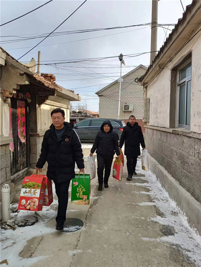 徹骨的寒冷阻擋不住愛心企業(yè)做公益的腳步。12月17日上午,棲霞德豐食品有限公司辦公室主任陳福春在唐家泊鎮(zhèn)人大副主任衣龍良陪同下,冒著風雪來到桃村鎮(zhèn)接官亭村走訪慰問102歲老人趙連英。