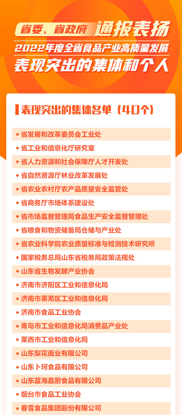 近日,省委、省政府印發(fā)《關(guān)于表?yè)P(yáng)2022年度全省食品產(chǎn)業(yè)高質(zhì)量發(fā)展表現(xiàn)突出的集體和個(gè)人的通報(bào)》?!锻▓?bào)》指出: