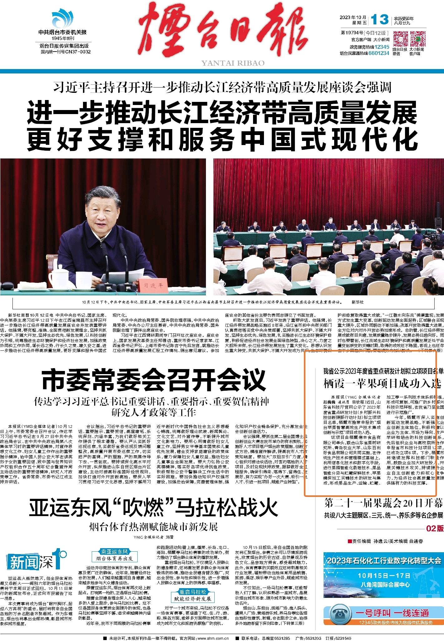 《煙臺日報》頭版:棲霞一蘋果項目入選2023年度省重點研發(fā)計劃