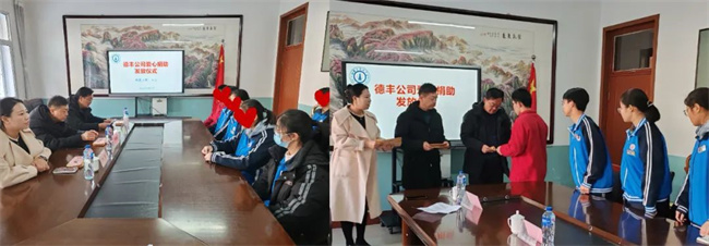 本次活動,為棲霞一中10名品學兼優(yōu)的困難學生發(fā)放1.5萬元的助學金。棲霞德豐食品有限公司董事長潘德輝于2012年7月設(shè)立潘德輝愛心助學基金,該基金自成立以來,累計救助困難學生110人次,發(fā)放助學金15.7萬元。